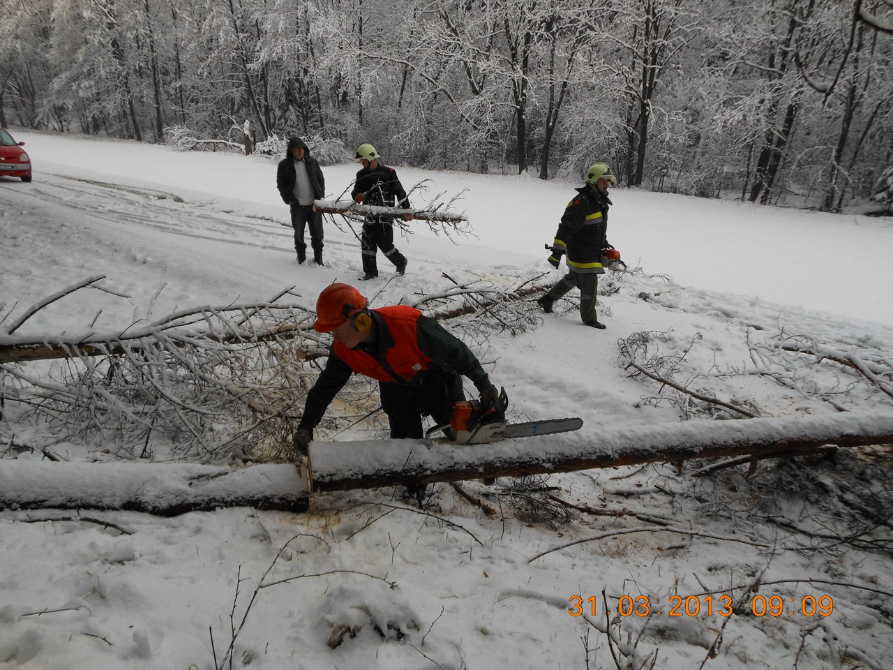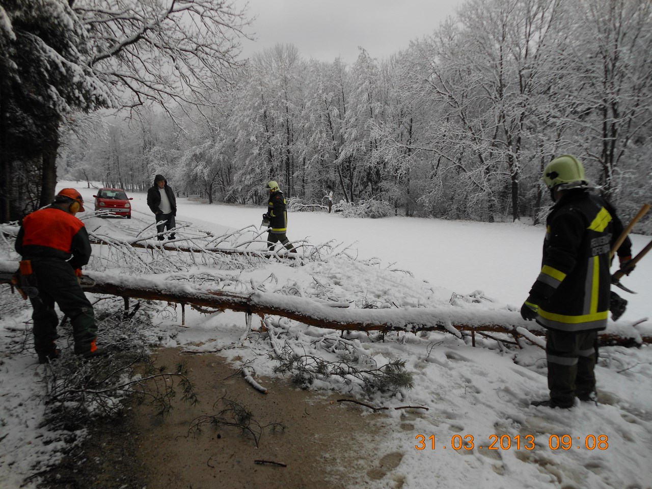 des schweren Neuschnees umgestürzt waren. Nachdem wir diese