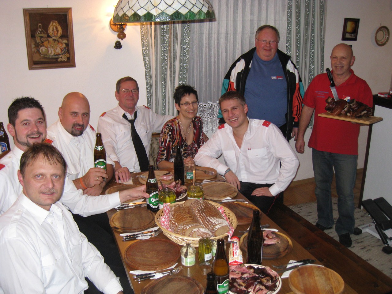 Sammler zu einer deftigen Stelzenjause bei ihm zu Hause