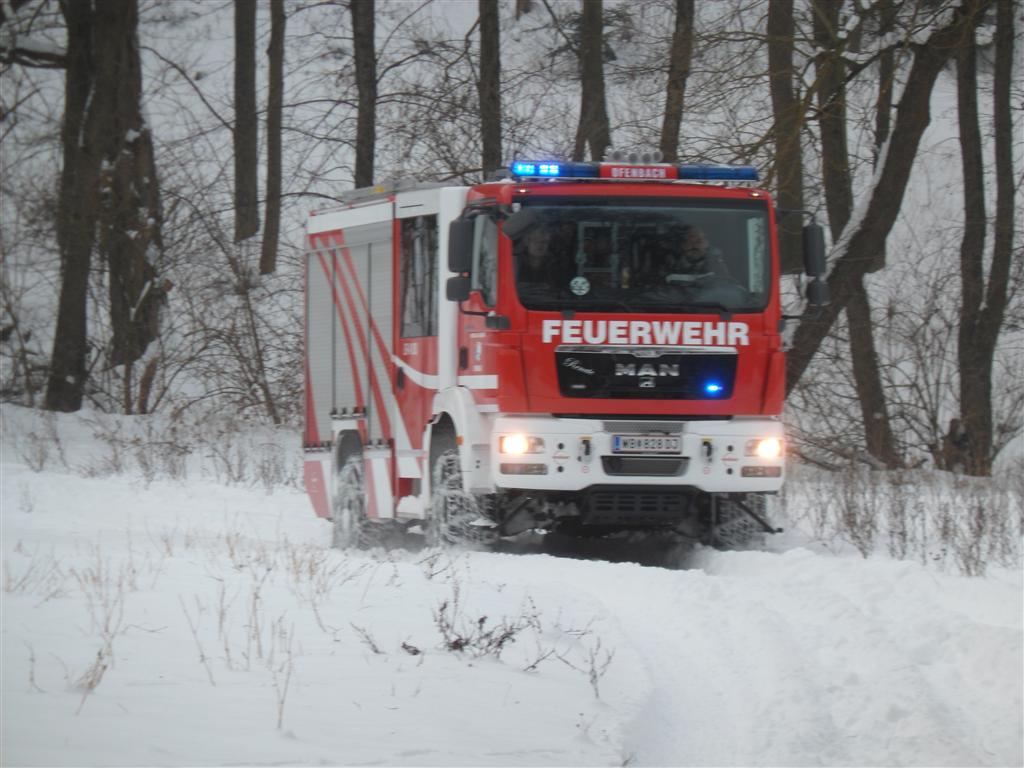 um mit dem neuen LF im verschneiten Gelände eine Übungsfahrt zu